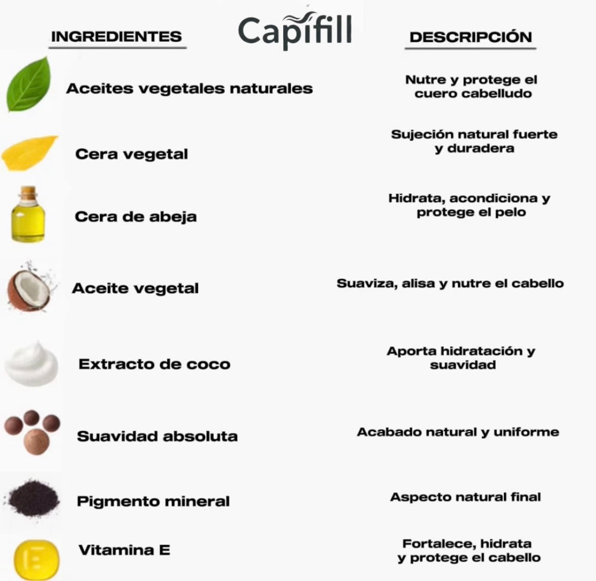 No. Capifill no contiene químicos agresivos, alcohol, ni irritantes que puedan dañar el cuero cabelludo o los folículos pilosos. Está diseñado para uso diario, incluso en zonas con poco cabello o sensibles.